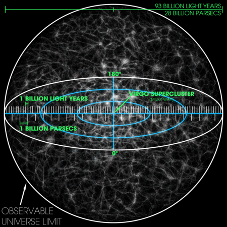 우주의 크기는 천문학과 우주론에서 진행 중인 연구의 주제입니다. 우리가 볼 수 있는 우주의 일부인 관측 가능한 우주는 직경이 약 930억 광년으로 추정됩니다. 그러나 관측 가능한 우주는 전체 우주의 작은 부분에 불과하다는 점에 유의해야 합니다. 인플레이션 빅뱅 모델과 같은 일부 이론에 따르면 우주는 관측 가능한 우주보다 훨씬 크고 무한할 수 있습니다.